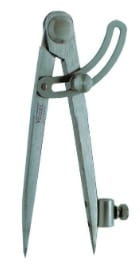 Wykonanie ze szlifowanej stali, ramiona o przekroju czworokątnym, hartowane końcówki, ramiona mocowane nitem, blokada, uchwyt na ołówek, rysik itp.