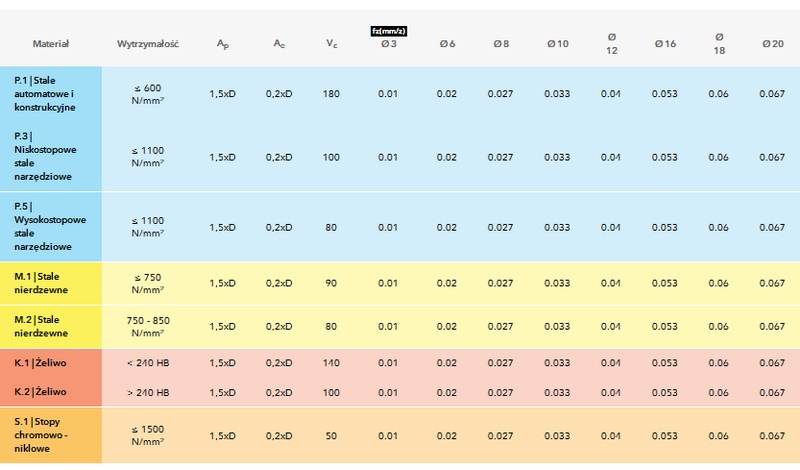 Warunki skrawania: