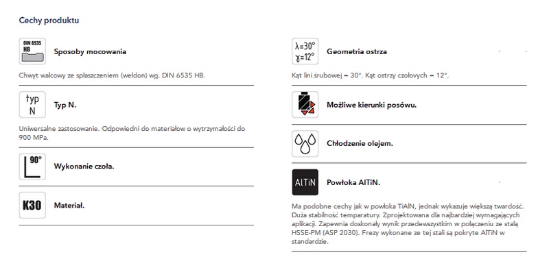 Frez węglikowy Ø 12x22x83, Z3, λ 30°, DIN 6527L, SC, AlTiN, N, chwyt weldon