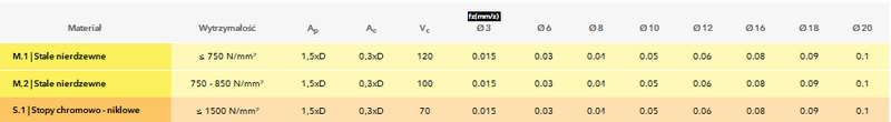 Warunki skrawania:
