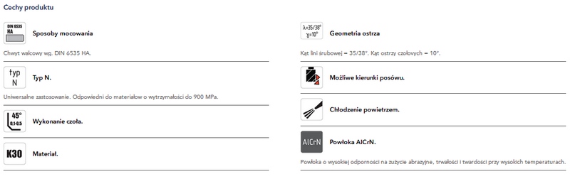 Frez trzpieniowy z węglika spiekanego, długi, 4 ostrza, w tym 2 ostrze przez środek, 35°-38°, typ N, chwyt walcowy gładki