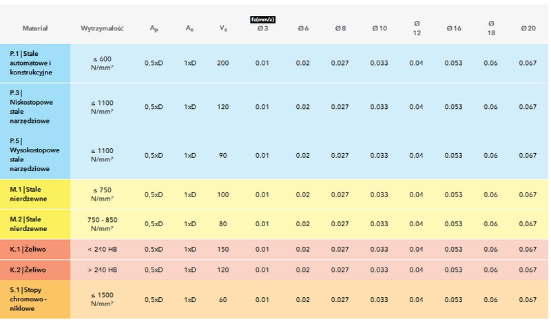 Warunki skrawania: