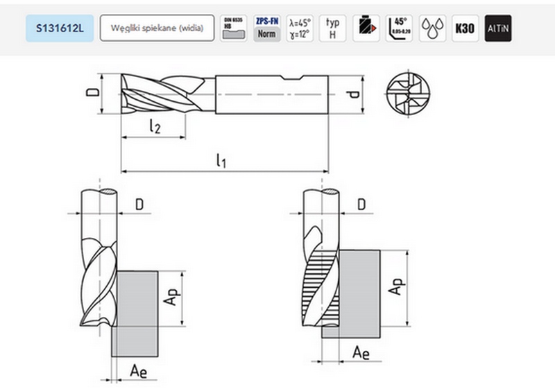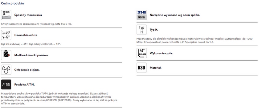 Frez węglikowy Ø 18x55x115, Z8, λ 45°, ZPS, SC, AlTiN, H, weldon