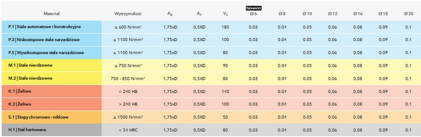 Warunki skrawania: