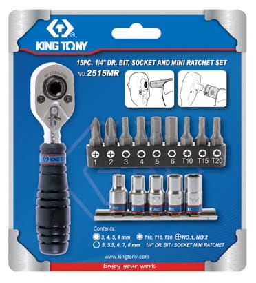 ▪ 15 szt. 1/4" końcówek i zestaw z mini grzechotką