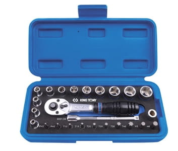KPL. NASADEK 1/4'' 25cz. KRÓTKIE, 6-kąt. 4 - 13mm Z AKCESORIAMI, CHROM, KASETA King Tony