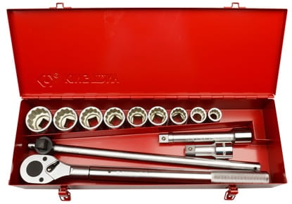 KPL. NASADEK 3/4'' 13cz. KRÓTKIE 12-kąt. 19 - 41mm Z AKCESORIAMI, CHROM, KASETA