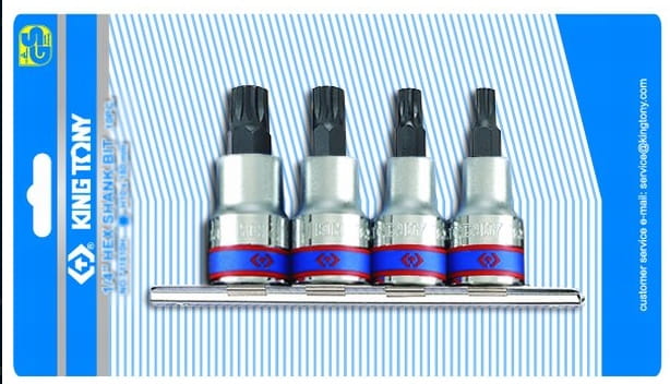 Komplet nasadek 1/2" z końcówka spline firmy King Tony. Zestaw na krótkiej szynie 127mm, która umożliwia mocowanie na ścianie. W zestawie znajdują się nasadki w rozmiarach M6, M8, M10, M12.