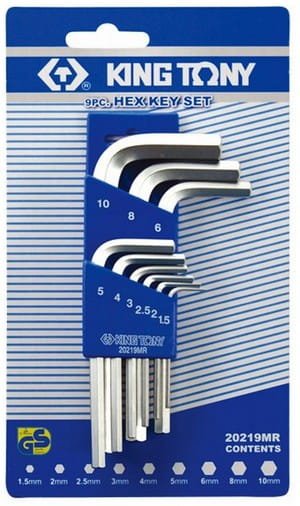 Zestaw kluczy imbusowych hex firmy King Tony. Klucze o rozmiarach [mm]: 1.5, 2, 2.5, 3, 4, 5, 6, 8, 10. Uchwyt plastikowy, blister.