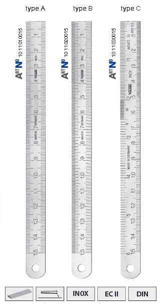 Typ C górna krawędź podziałka 1/64", 1/32" i 1/16", dolna krawędź podziałka 1/2mm i 1 mm