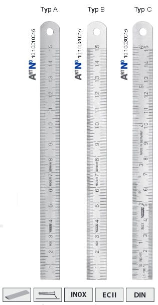 Typ C górna krawędź podziałka 1/64", 1/32" i 1/16", dolna krawędź podziałka 1/2mm i 1 mm