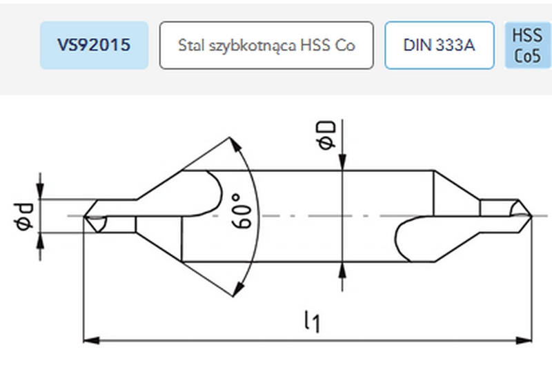 Nawiertak DIN 333 A HSSCo5 (kobaltowy), 60 st.