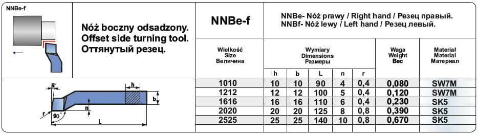 Nóż tokarski boczny odsadzony ze stali szybkotnącej prawy NNBe