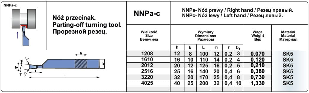 Nóż tokarski przecinak ze stali szybkotnącej prawy NNPa