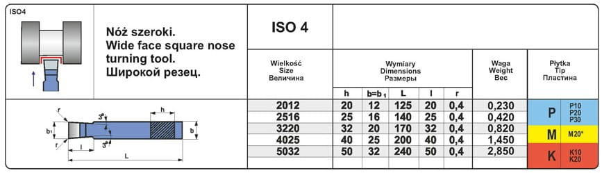 Nóż tokarski szeroki z lutowaną płytką z węglika spiekanego NNPd (ISO 4)
