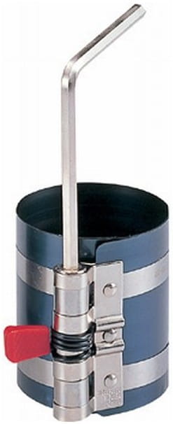 Klucz do regulacji umożliwia ściśnięcie pierścienia i wsunięcie tłoka w cylinder, a blokada zapobiega ich rozszerzaniu. Wysokość 80 mm, średnica 57-125 mm
