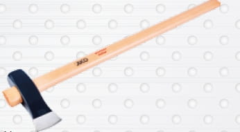 Część robocza kuta, szlifowana, hartowana indukcyjnie i malowana. Trzon bukowy, samo klinujący.