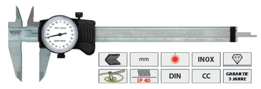 Suwmiarka zegarowa 200 mm / 0,02 mm precyzyjna IP40 Vogel Germany